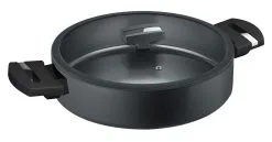 Eine Servierpfanne hat zwei Griffe, die das Hantieren erleichtern und daher besonders geeignet sind, um Speisen auf dem Tisch zu servieren. Sofern Griffe und Pfanne aus hitzebeständigem Material bestehen, eignen sie sich auch super für den Backofen.