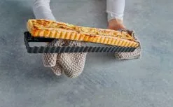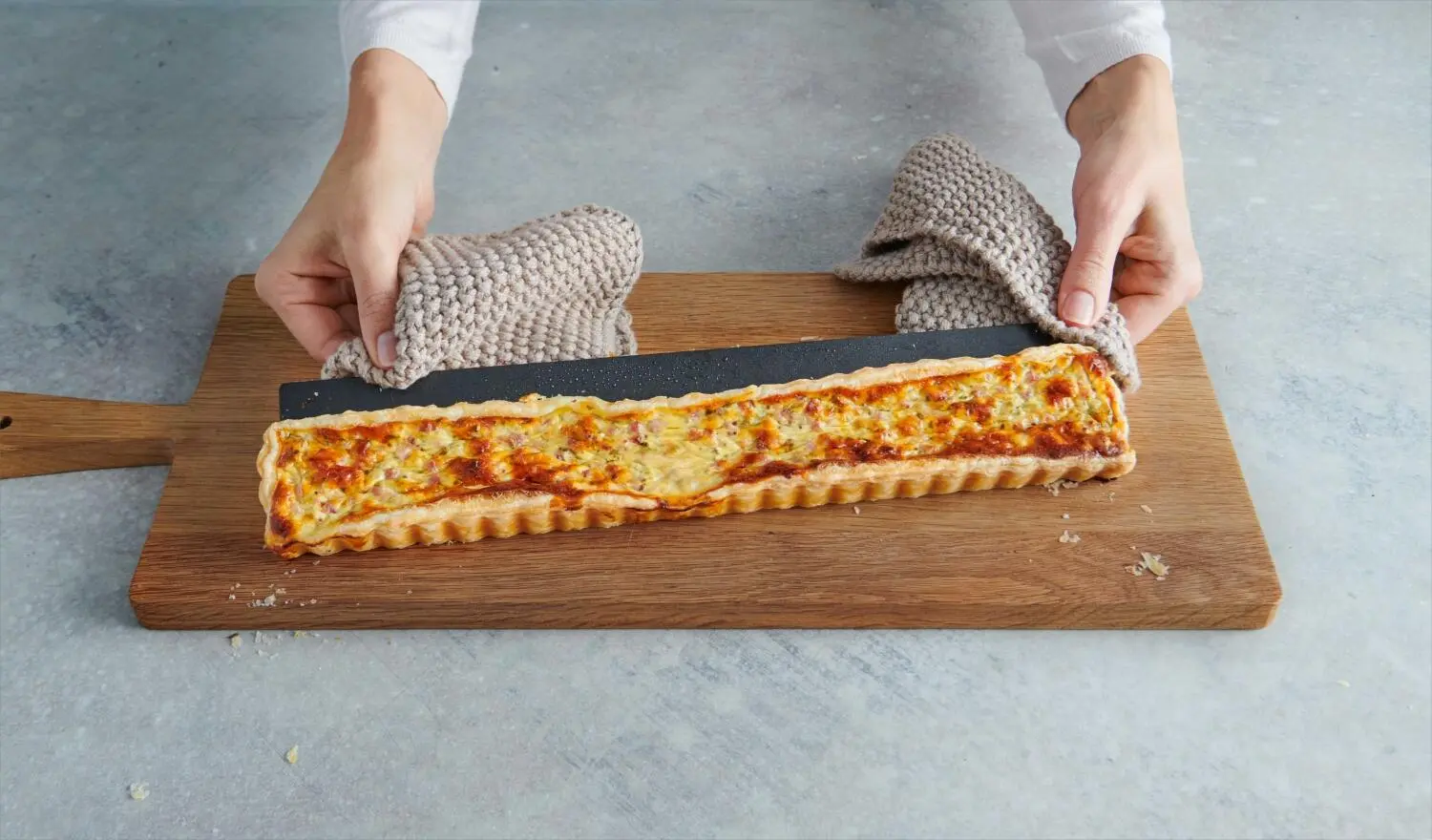 Der dekorative Wellenrand sieht nicht nur hübsch aus, sondern dient auch gleichzeitig als praktische Schneidhilfe. Beide Schnitten ergeben bis zu 24 „Häppli“. Dank des praktischen Hebebodens und der Antihaft-Beschichtung lassen sich die Schnitten ganz einfach und ohne zu brechen aus der