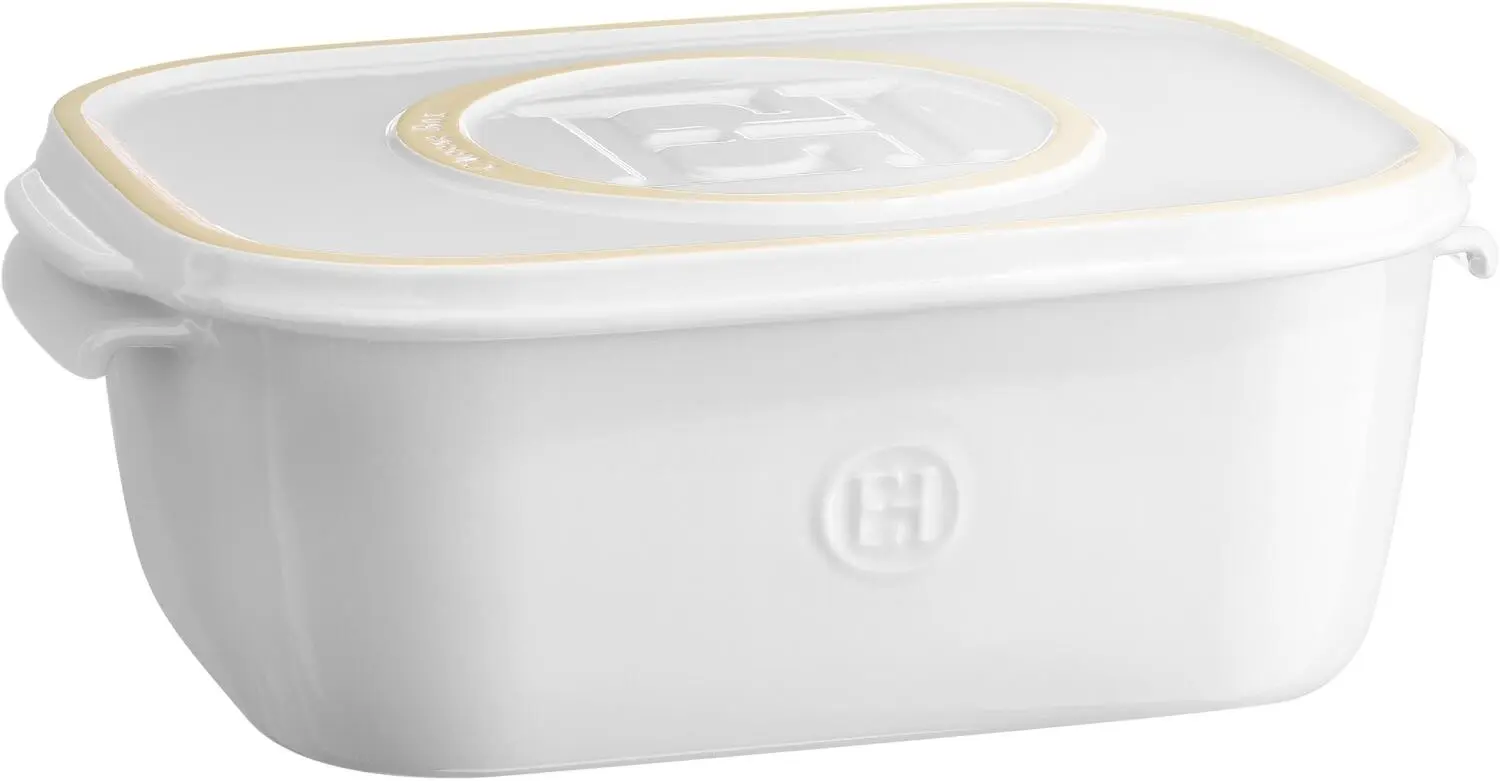 Emile Henry Käsebox in craie. Die Käsebox aus Keramik ist ideal zur Aufbewahrung von Lebensmitteln im Kühlschrank sowie zum Servieren am gedeckten Tisch.
