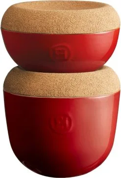 Die Knoblauchdose ist auch so konzipiert, dass ein weiterer Topf darauf gestapelt werden kann, um den Platz auf der Arbeitsplatte zu optimieren. Ob für Knoblauch, Schalotten oder Ingwer, die Emile Henry Dose macht immer einen guten Eindruck.