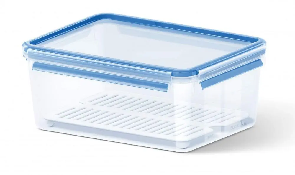 Emsa Frischhaltedose Clip & Close mit Abtropfgitter. Praktisch zum Auftauen, Abtropfen und Marinieren. Dank des Abtropfgitters wird Obst und Gemüse länger frisch gehalten!