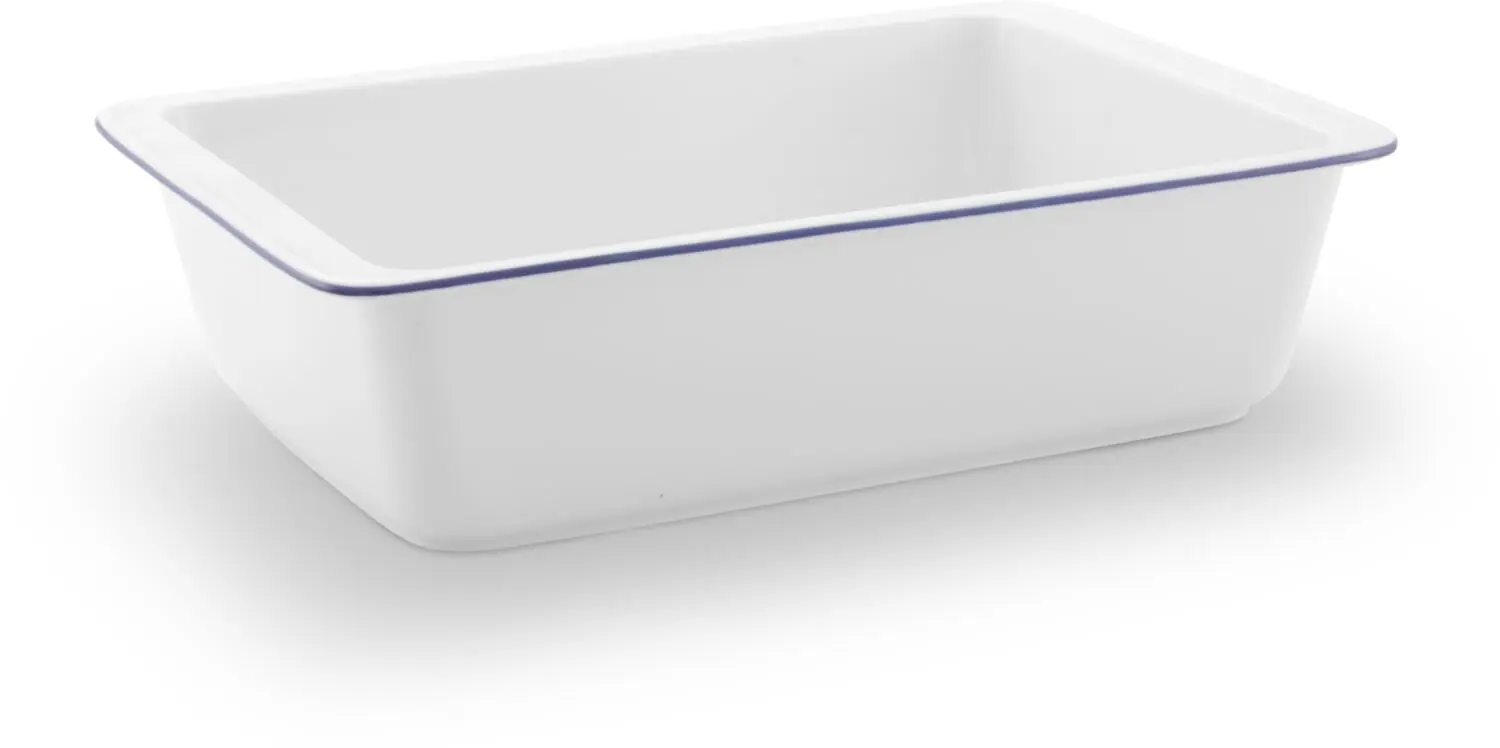 Lasagneform JEVERLAND aus der Serie Kleine Brise. Rechteckige Auflaufform mit blauem Rand made in Germany. Die zeitlos klassische Form ist in zwei Größen erhältlich, sodass Sie auch mal ganz für sich allein eine Lasagne zubereiten können.