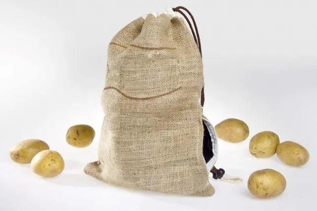 Aufbewahrungsbeutel für Kartoffeln. Jutebeutel mit Zugband zum luftigen und lichtgeschützten Lagern von Kartoffeln.