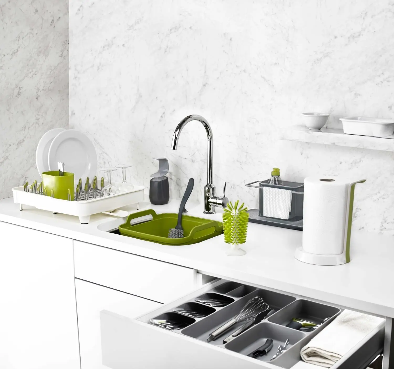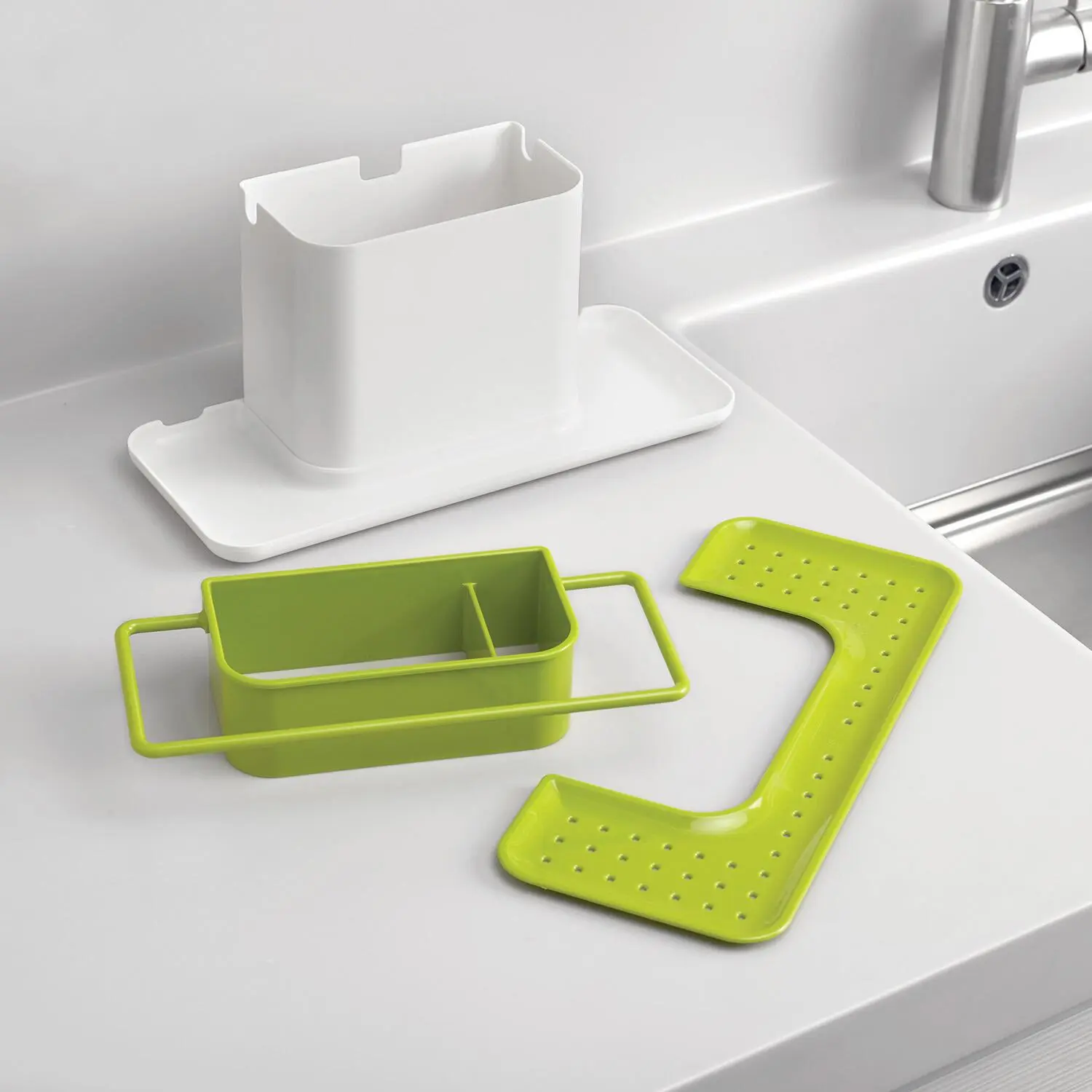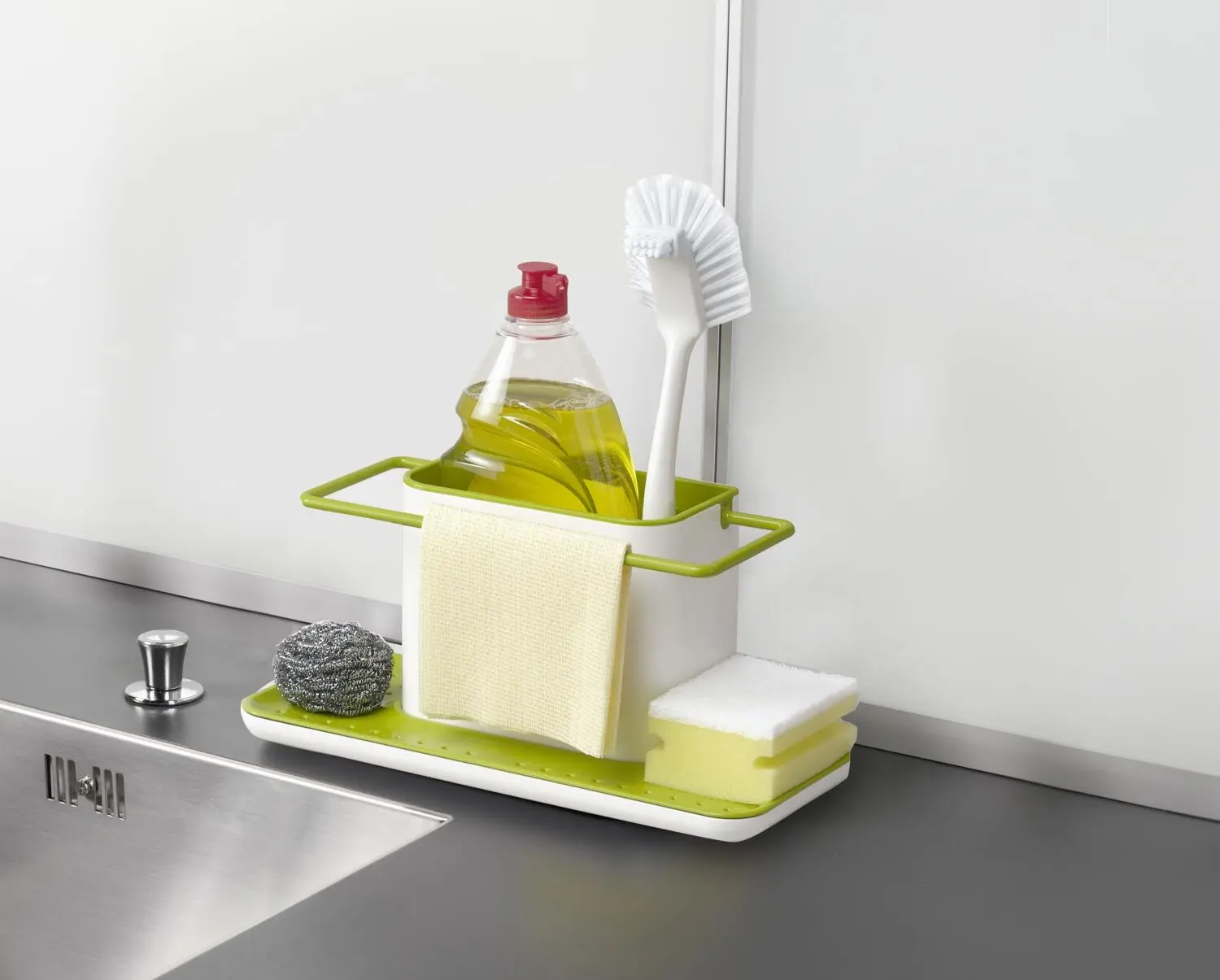 Joseph Joseph Ordnungshelfer Caddy groß in weiß/grün. Zum ordnungsgemäßen Verstauen von Spülbürste, Schwamm, Lappen und Spülmittel.