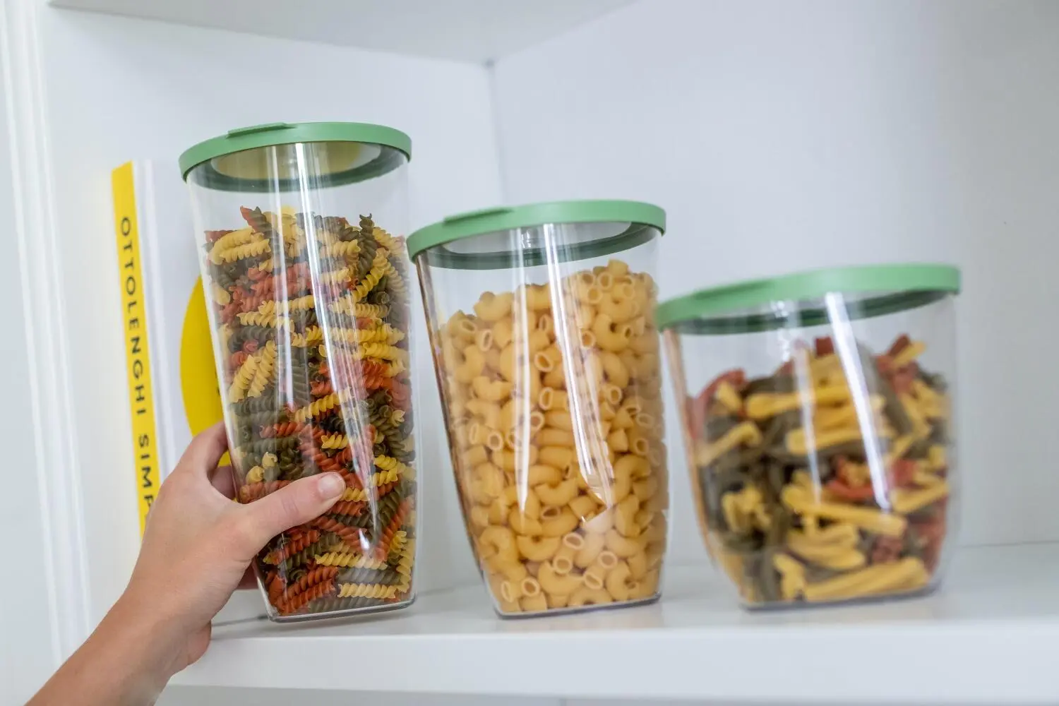 Diese zeitlos schönen Vorratsdosen sind perfekt geeignet für alle Lebensmittel, die trocken gelagert werden. Von Mehl, Zucker und Nudeln über Cornflakes und Nüsse, CONNECT DRY STORAGE hat für alles Platz, was luftdicht und aromaschonend aufbewahrt werden soll. Die Dosen kommen in hochtransparentem Material, so sieht man gleich, was drinnen ist und muss nicht lange suchen. Die farbigen Deckel helfen zusätzlich bei der Unterscheidung.