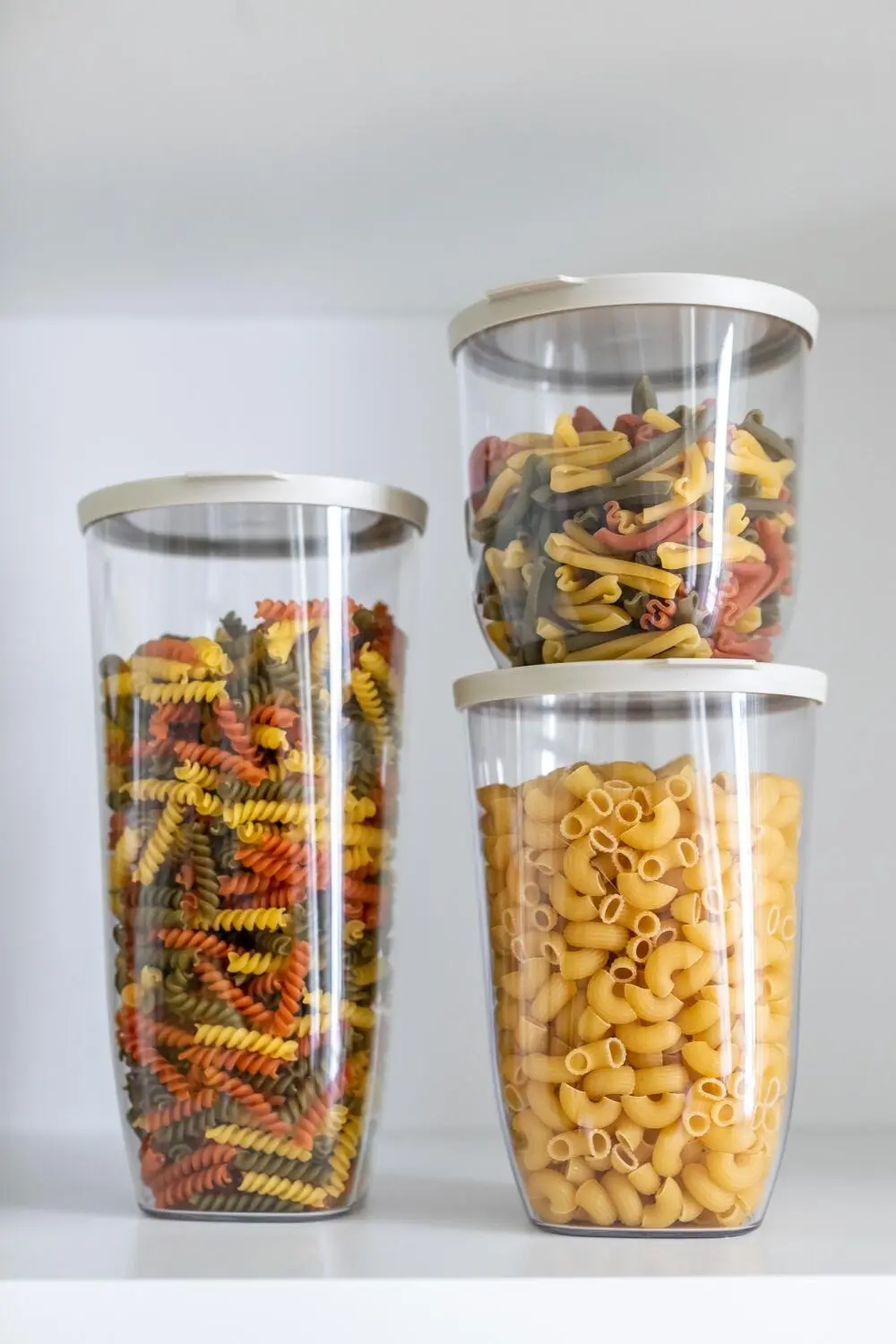 Diese zeitlos schönen Vorratsdosen sind perfekt geeignet für alle Lebensmittel, die trocken gelagert werden. Von Mehl, Zucker und Nudeln über Cornflakes und Nüsse, CONNECT DRY STORAGE hat für alles Platz, was luftdicht und aromaschonend aufbewahrt werden soll. Die Dosen kommen in hochtransparentem Material, so sieht man gleich, was drinnen ist und muss nicht lange suchen. Die farbigen Deckel helfen zusätzlich bei der Unterscheidung.