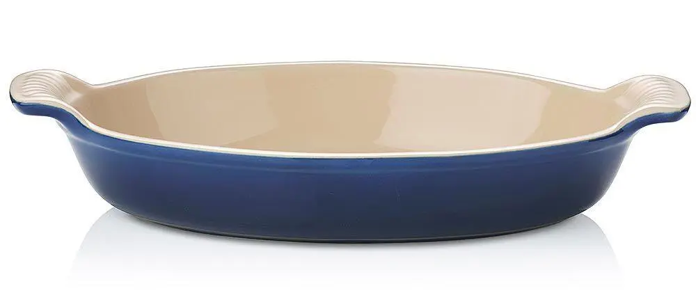 Le Creuset Auflaufform oval in tinte. Die Poterie Auflaufform von Le Creuset ist optimal zum Gratinieren und Überbacken. In der Le Creuset Auflaufform wird der Teig gleichmäßig durchgebacken und von allen Seiten goldbraun und knusprig. Die praktischen Seitengriffe erleichtern die Handhabung.