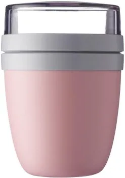 Lunchpot Ellipse in der Farbe Nordic Pink. Dieser rosafarbene Ellipse Lunchpot von Mepal ist eine praktische Transportmöglichkeit, um einen kleinen Snack oder eine Zwischenmahlzeit mitzunehmen. Mit zwei verschiedenen Behältern, in denen sich die Zutaten getrennt voneinander aufbewahren und transportieren lassen. So wird aus dem Mepal Lunchpot ganz einfach ein praktischer Suppenbecher, Joghurtbecher oder Müslibecher to go.