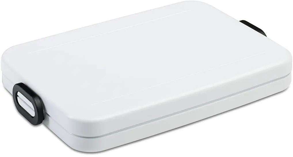 Lunchbox Take a Break flat in der Farbe Weiß. Diese flache weiße Box von Mepal passt perfekt in eine Laptoptasche oder einen Rucksack und ist geeignet für maximal 4 Butterbrote.