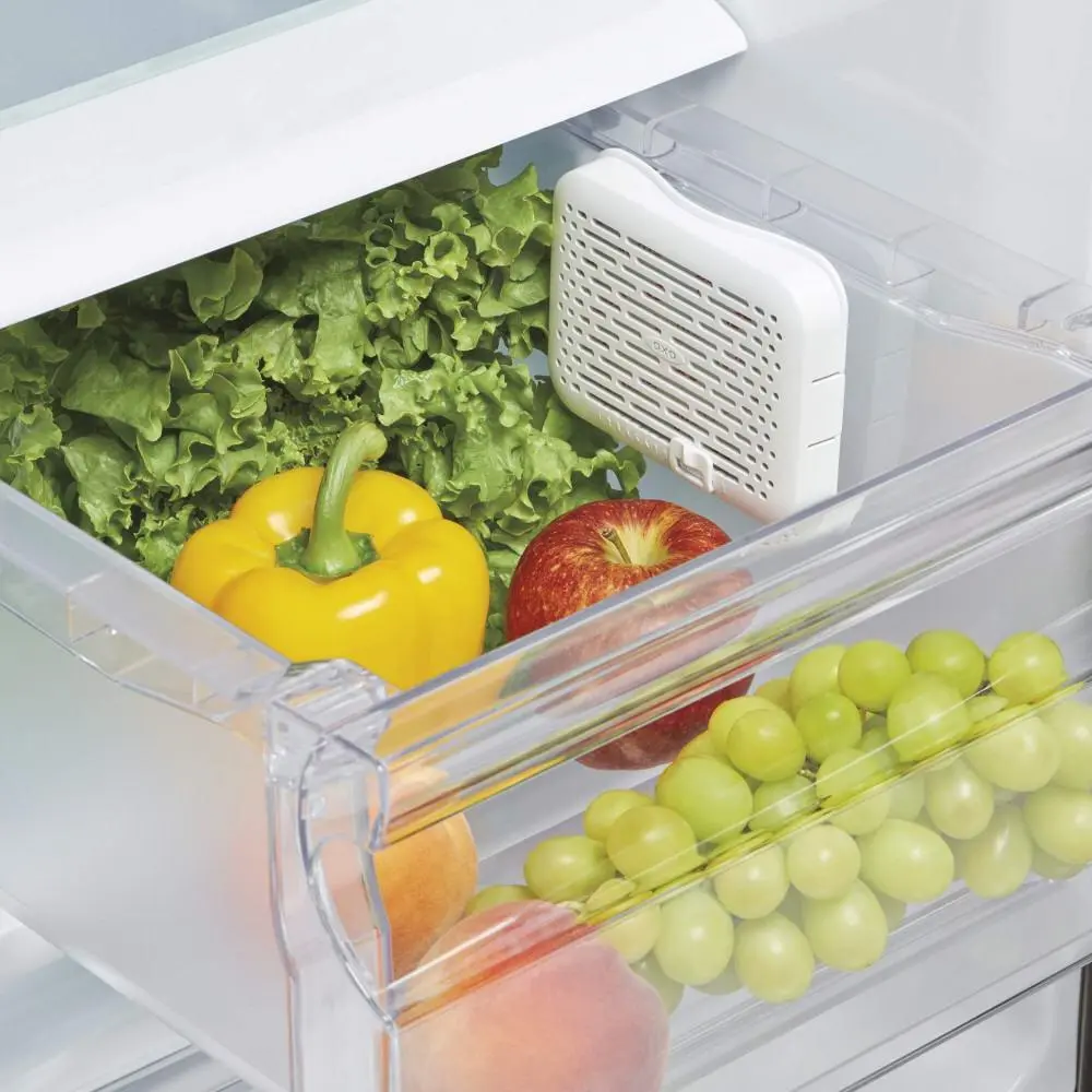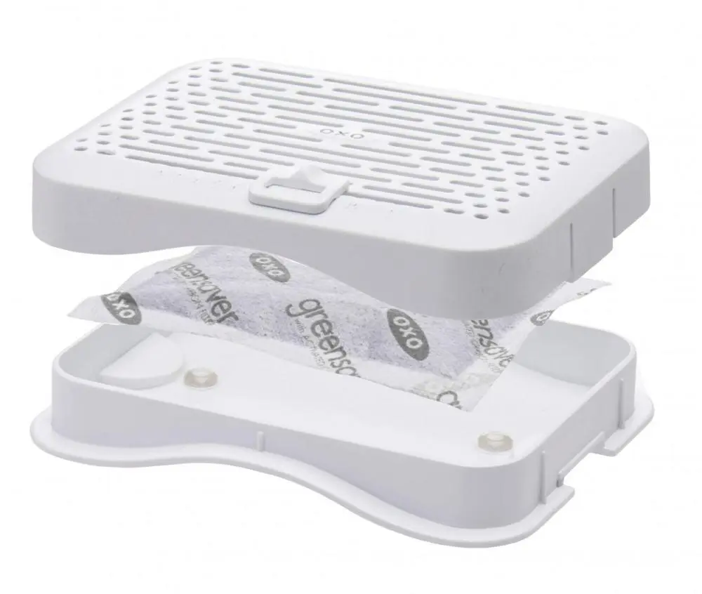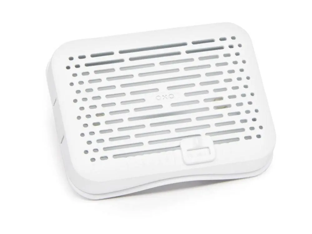Der innovative Frischhalteeinsatz von OXO hält Ihr Obst und Gemüse länger frisch. Einfach an die Seite Ihres Gemüsefachs im Kühlschrank hängen und schont macht sich der integrierte Aktivkohlefilter ans Werk: Jegliches Ethylen-Gas wird absorbiert und aus der Luft gefiltert, sodass das Gemüse länger knackig bleibt. Eine Anzeige zeigt Ihnen außerdem, wann Sie den Filter wechseln müssen.