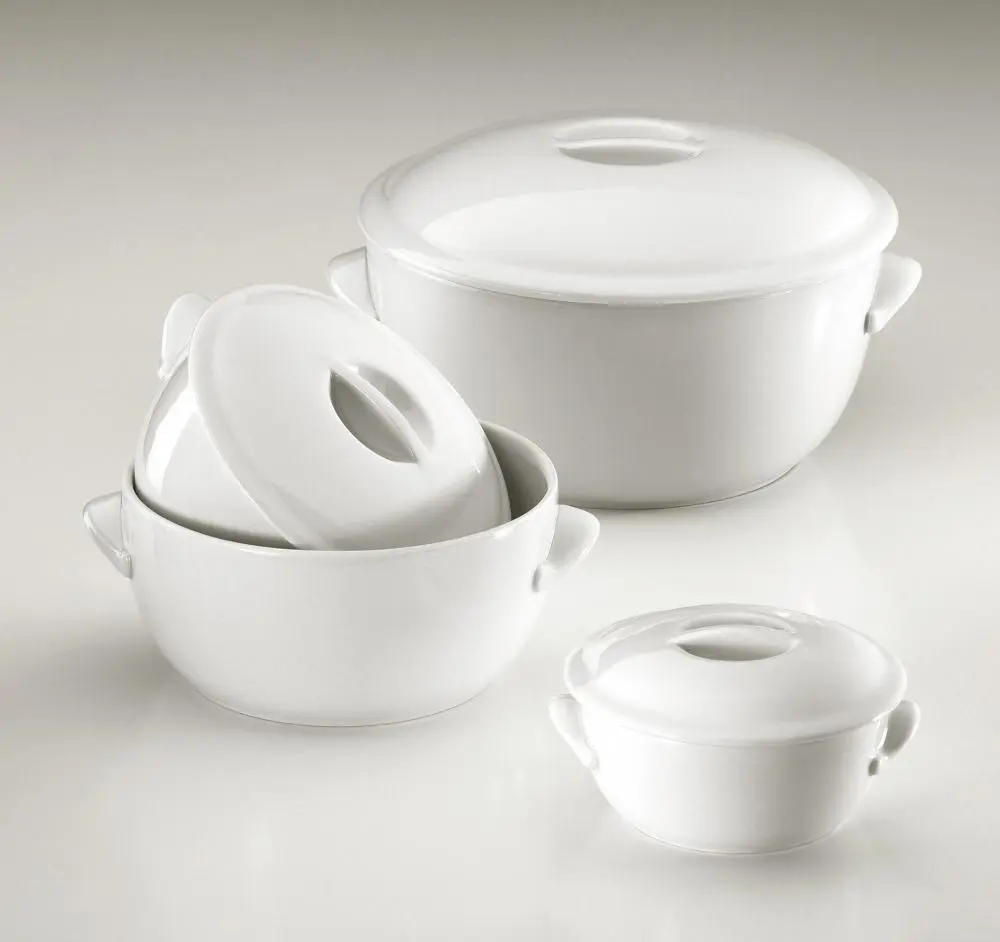 Pillivuyt Kasserollen brillieren durch Stilreinheit, Funktionalität und ihrem zeitlosen Design. Die traditionelle Außenform ist innen glatt, was die Reinigung nach dem Gebrauch erleichtert. Des Weiteren ist die Glasur für starke Beanspruchung geeignet.