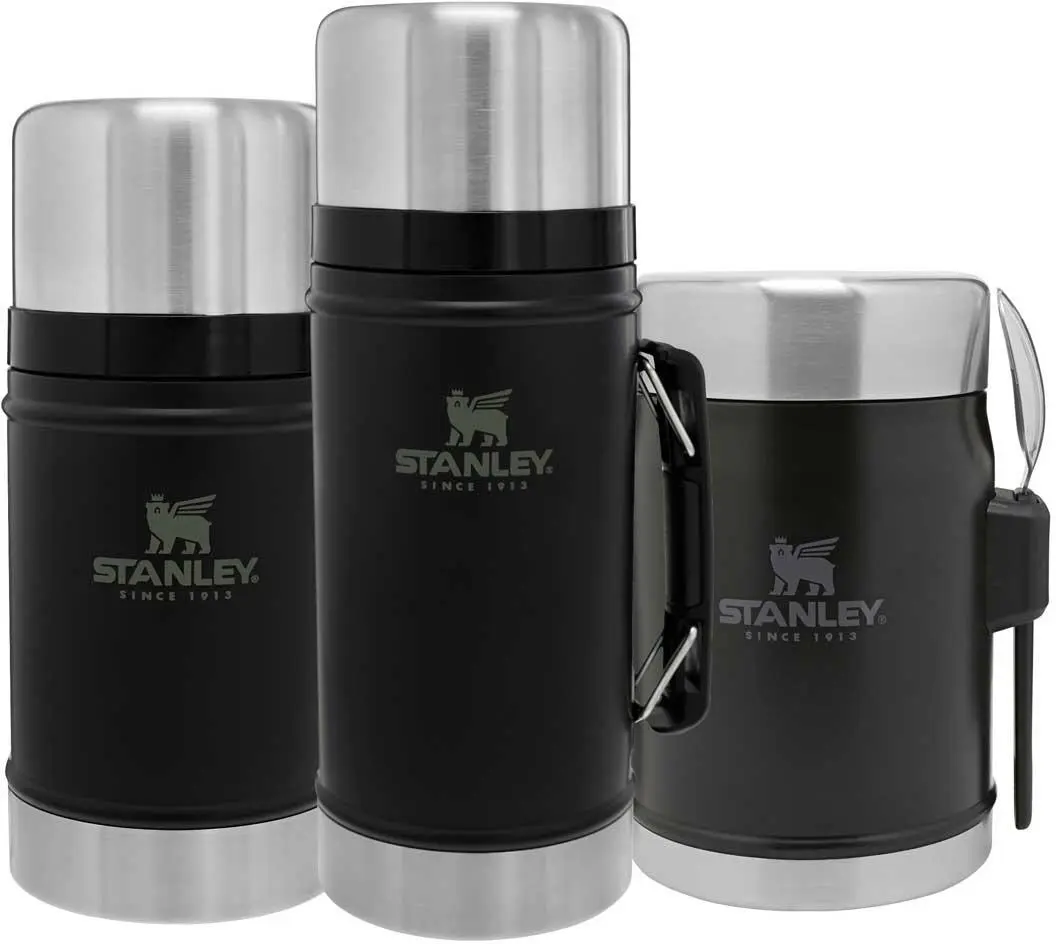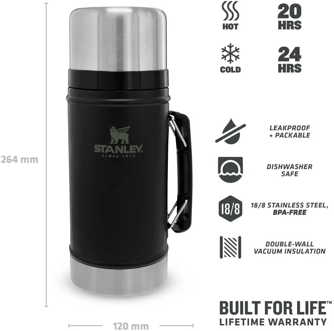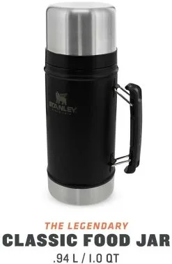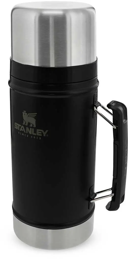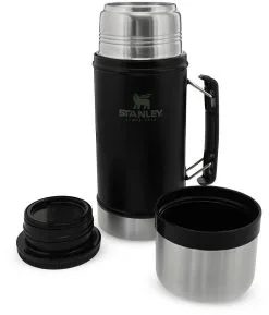Der praktische Stanley CLASSIC FOOD CONTAINER passt in jeden Wander-Rucksack. Durch die große Öffnung mit 7 cm Durchmesser lassen sich sowohl kalte als auch warme Speisen bequem einfüllen. Auch die Reinigung des Containers geht leicht von der Hand. Der doppelwandige Vakuum-Container ist mit einer schützenden, matt schwarzen Lackierung versehen. Die Vakuum-Isolation hält den Inhalt bis zu 20 Stunden heiß oder 24 Stunden kalt. Der Deckel kann als Gefäß verwendet werden. Das Fassungsvermögen beträgt 0,94 Liter. Die Teile sind BPA frei und spülmaschinenfest.