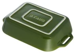 Die Keramikformen von Staub sind besonders robust und widerstandsfähig, so dass in ihnen Speisen auch im Kühlschrank aufbewahrt werden können und eine Reinigung in der Spülmaschine problemlos möglich ist.