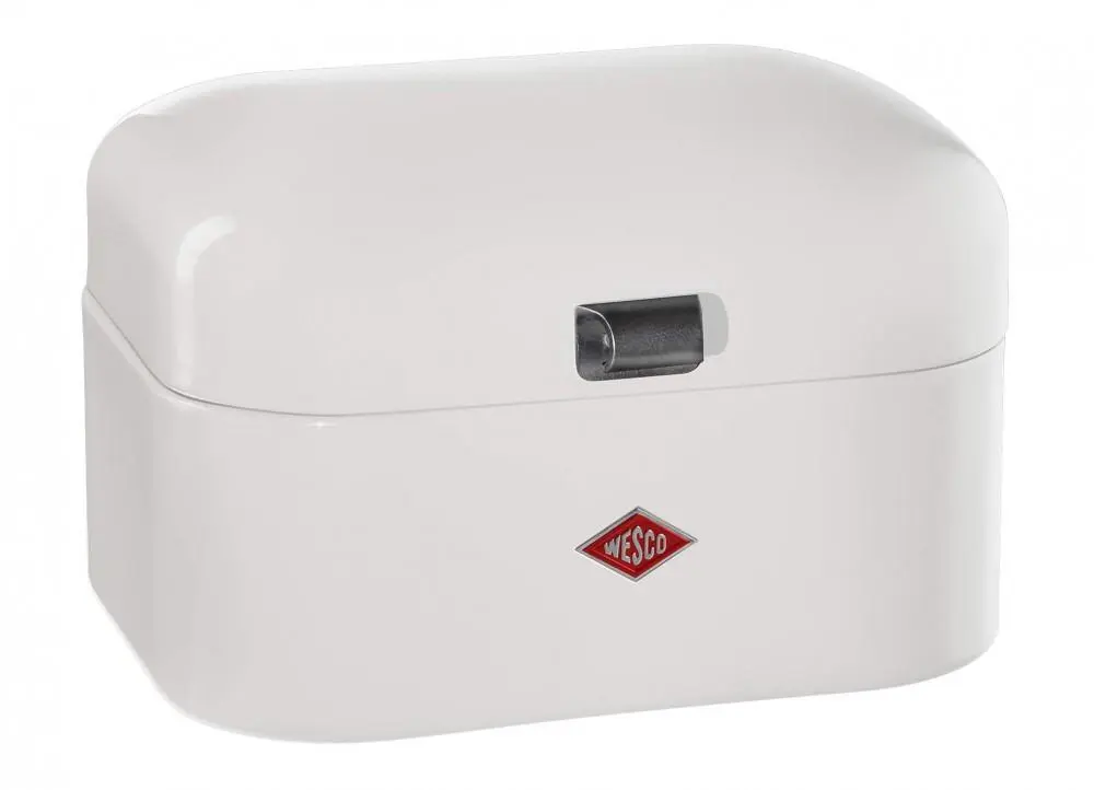 Wesco Brotkasten Single Grandy in weiß. Ein Retro-Klassiker im Stil der 40er Jahre. Ideal zur Aufbewahrung von Brot, Gebäck, Kuchen oder was immer Sie möchten.