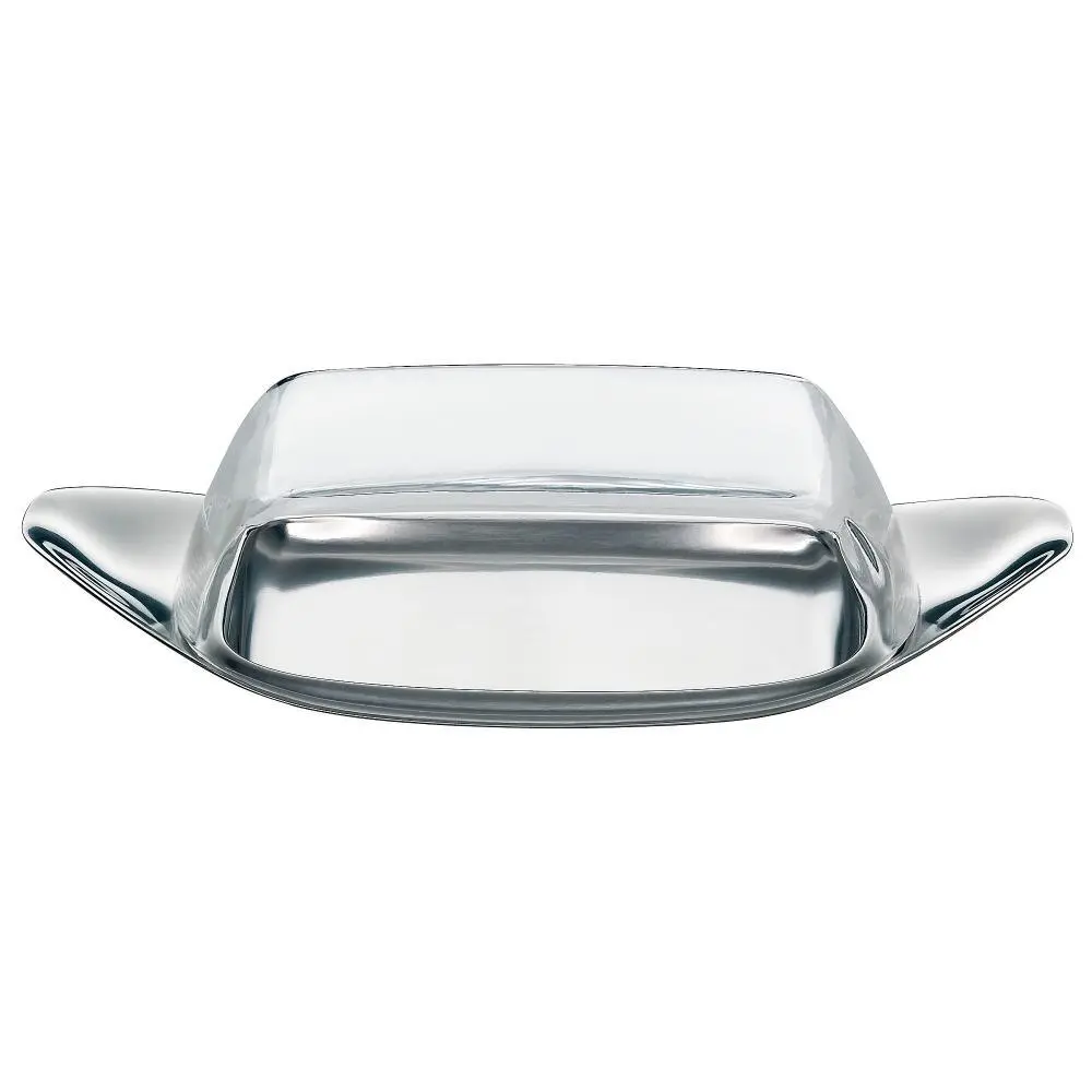 WMF Butterdose Wagenfeld. Das Unterteil der Butterdose hat eine hervorragende Haptik. dadurch ist sehr gute Greifen möglich. Die Größe ist für 250 g Butter geeignet.